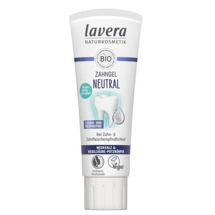 Naturalny żel do mycia zębów Lavera Neutral nie zawiera fluoru i fosfatów. Przy regularnym stosowaniu minimalizuje ryzyko zapadania na choroby zębów i dziąseł. Skutecznie zapobiega powstawaniu próchnicy, paradontozy czy osadzaniu się kamienia. Jest kosmeceutykiem, tzn., że jego właściwości kosmetyczne zostały rozszerzone o działanie lecznicze.