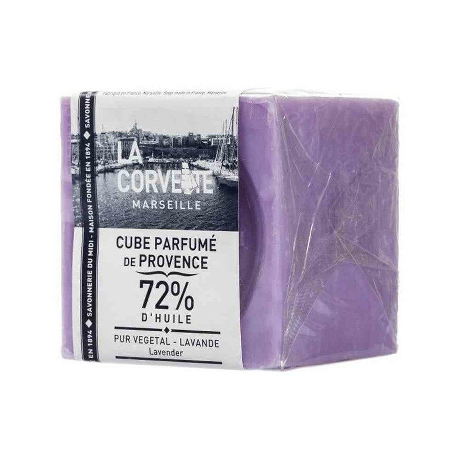 Mydło w kostce La Corvette zostało wyprodukowane na bazie olejów roślinnych (ok. 72%). W jego składzie znajdziemy olej palmowy, olej rycynowy i glicerynę. Nie zawiera tłuszczów zwierzęcych. Jest delikatne dla skóry. Nawilża ją, wygładza oraz dodaje elastyczności. Aromatyzowane olejkiem lawendy prowansalskiej.
