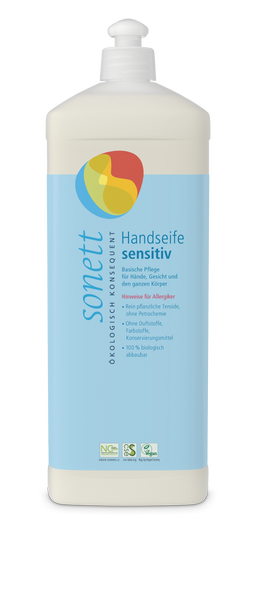 Ekologiczne mydło w płynie Sensitiv/Natural jest kosmetykiem przeznaczonym do codziennej pielęgnacji każdego rodzaju skóry ze szczególnym uwzględnieniem alergicznej i nadwrażliwej. Nadaje się do mycia twarzy, rąk i całego ciała.